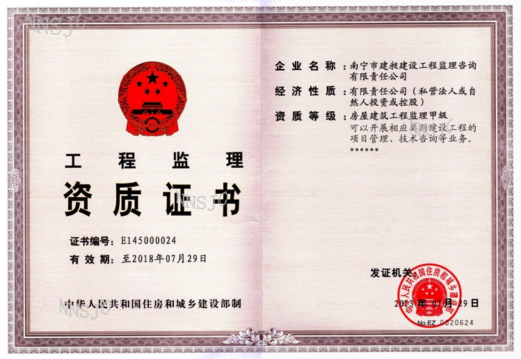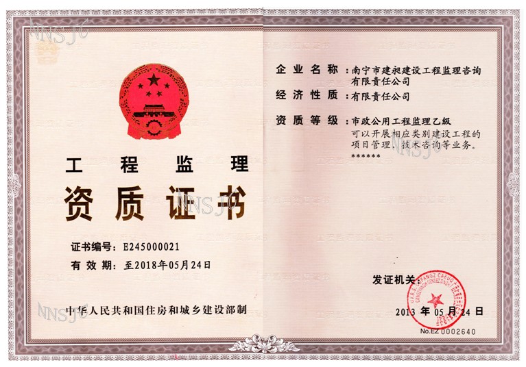 公司名稱:南寧市建昶建設(shè)工程監(jiān)理咨詢有限責(zé)任公司