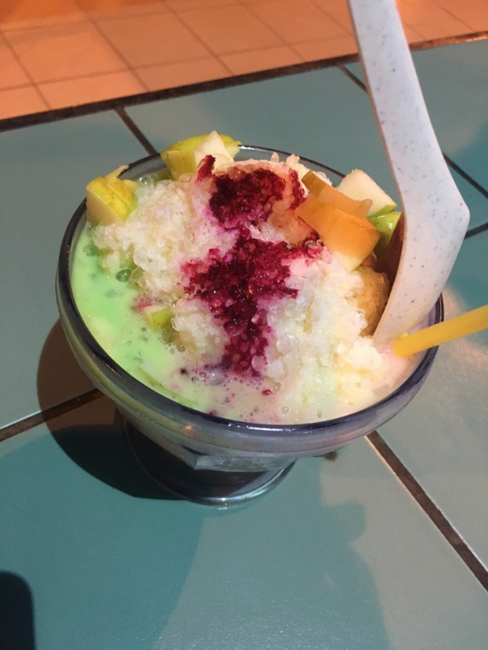 結(jié)果四個(gè)大老爺們逛了很久,逛了一圈,發(fā)現(xiàn)都是made in china 。 回酒店前,吃了一杯這個(gè),看不懂是什么,見(jiàn)圖片還行就點(diǎn)了。