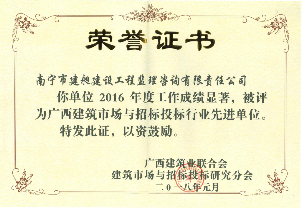 熱烈祝賀我公司再次榮獲“廣西建筑市場與招標投標行業(yè)先進單位”榮譽稱號,從2011年起已連續(xù)6年榮獲此殊榮。同時還有3位同志榮獲“廣西招標投標代理機構(gòu)先進個人”稱號,向他們表示祝賀。